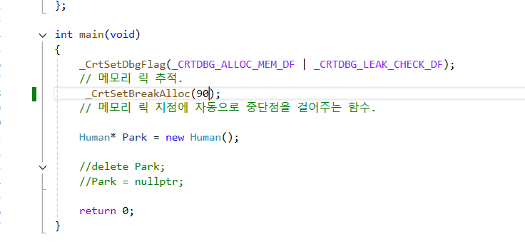 // 메모리 릭 지점에 자동으로 중단점을 걸어주는 함수.