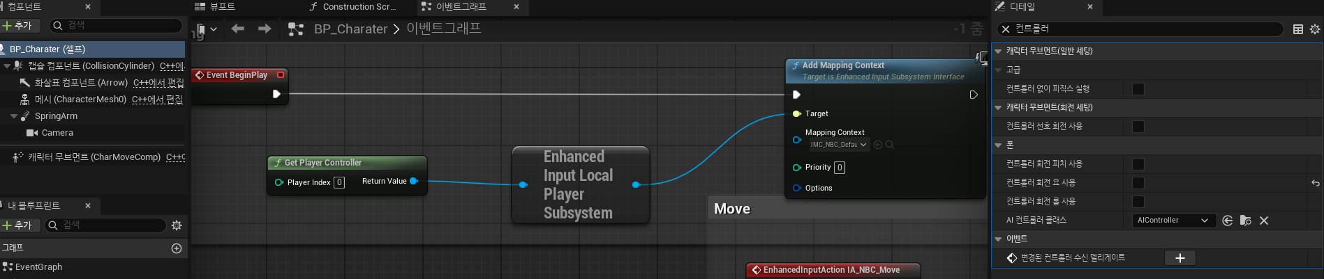 같은 플레이어 조작을 구현해도 게임개발 종합반 강의와 언리얼+블루프린트로 쉽게 배우는 3D 게임 개발의 노드가 조금 다른데 무슨 차이일까?