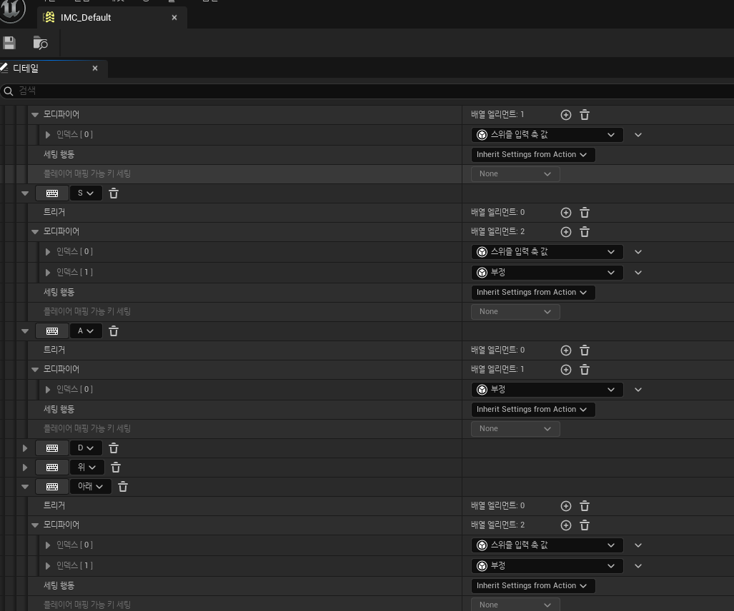 MoveForward, MoveRight 등 기본 입력 맵핑 확인