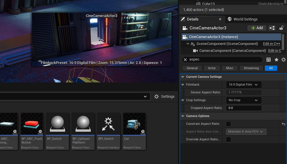시네마틱 카메라와 일반 카메라가 디테일 설정이 조금 다른데 이번에는 시네마틱 카메라로 진행하였다.